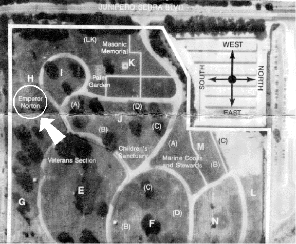 actual grave of Emperor Norton is, in fact, in Greenlawn Cemetery, not, as the