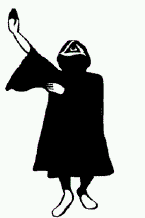 | Raise both arms into the air, forming a great Why? with your body. | Place the left hand under the right arm (High Initiates may put their hand inside their robe) | Clench the right fist and bring your arm down sharply, as if pulling the Emergency break on a New York City subway train. |